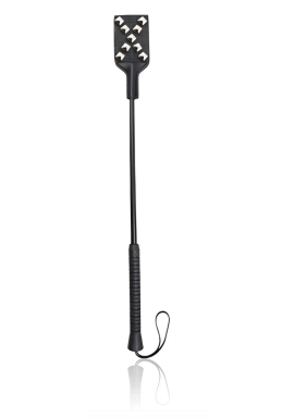 Műbőr csapóval és a csapón fém szegecsekkel.